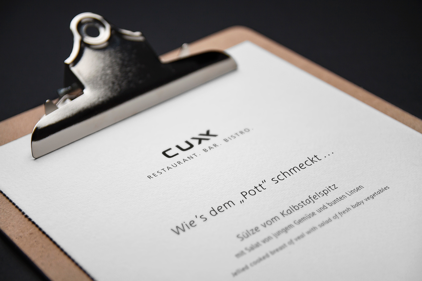 Entwicklung des Corporate Designs für das Restaurant CUXX im ATLANTIC Congress Hotel Messe Essen.
