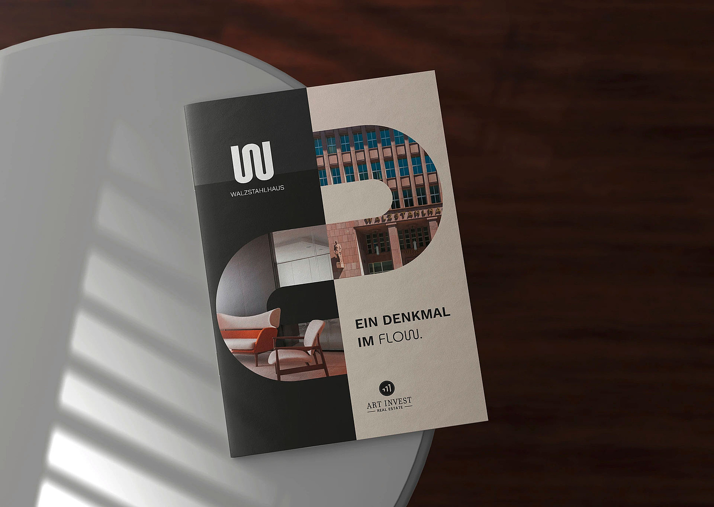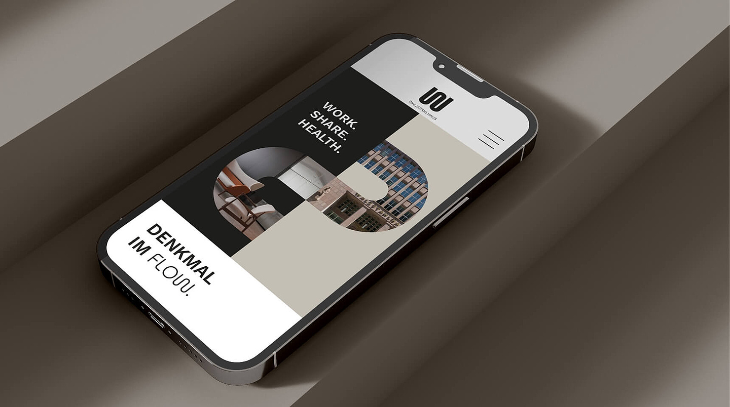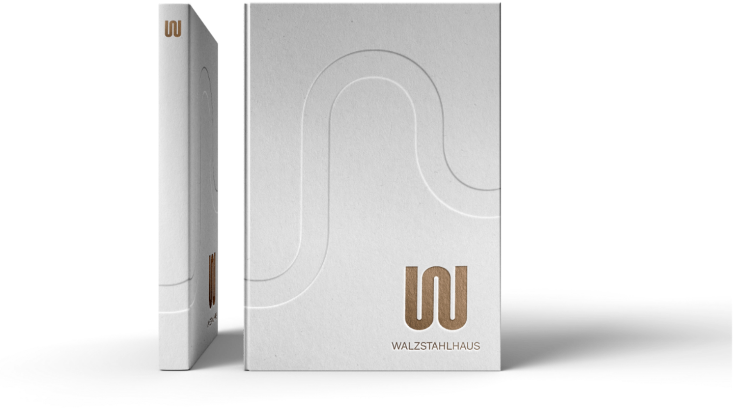 Inspiriert von der historischen Vergangenheit des Gebäudes in der Stahlindustrie haben wir ein Designkonzept entwickelt, das auf dem Initiallogo – einem "W" erinnernd an gewalzten Stahl – basiert. Diese Formensprache zieht sich durch die gesamte Gestaltung und visualisiert auch den Claim "Denkmal im Flow", der die Transformation des geschichsträchtigen Hauses in ein modernes Boutique Office beschreibt.