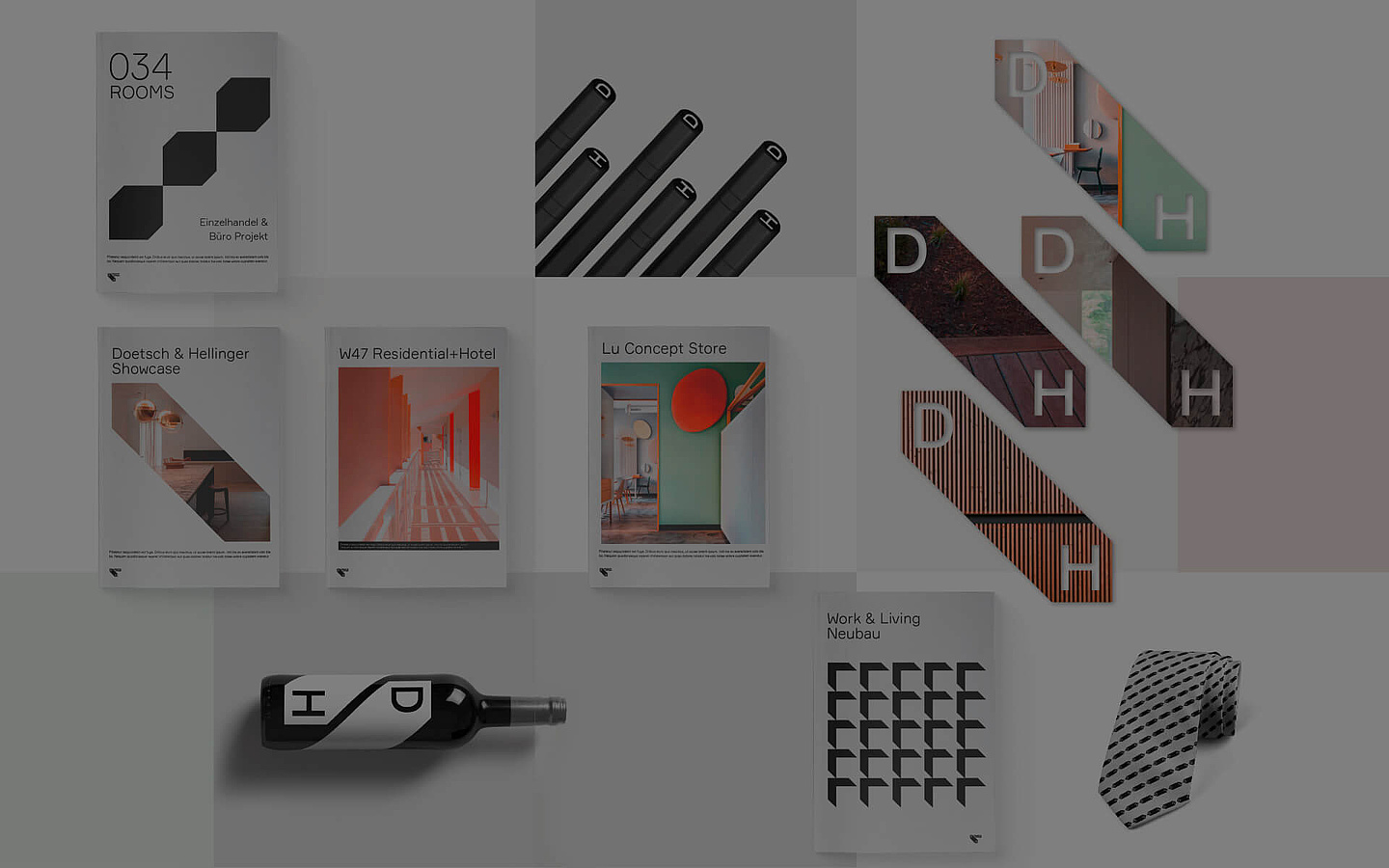 Ein Logo allein reicht niemals aus, um eine Unternehmensmarke unverwechselbar zu machen. Hier haben wir ein flexibles Gestaltungssystem entwickelt, das an jeder Stelle der Kommunikation einen hochwertigen und identifizierenden Charakter vermittelt.