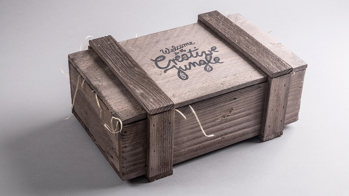 Doch jetzt wird Abhilfe geschaffen: die Creative Jungle Box enthält kleine Helfer, die das Schlimmste abwehren: Bunte Jelly Beans helfen, auf die Instinkte zu vertrauen, eine Campfire-Kerze befeuert die Inspiration, ein Schluck Gin verleiht Mut zur starken Idee und ein Riegel Schokolade berühigt die Nerven, auch wenn´s mal hektisch wird.